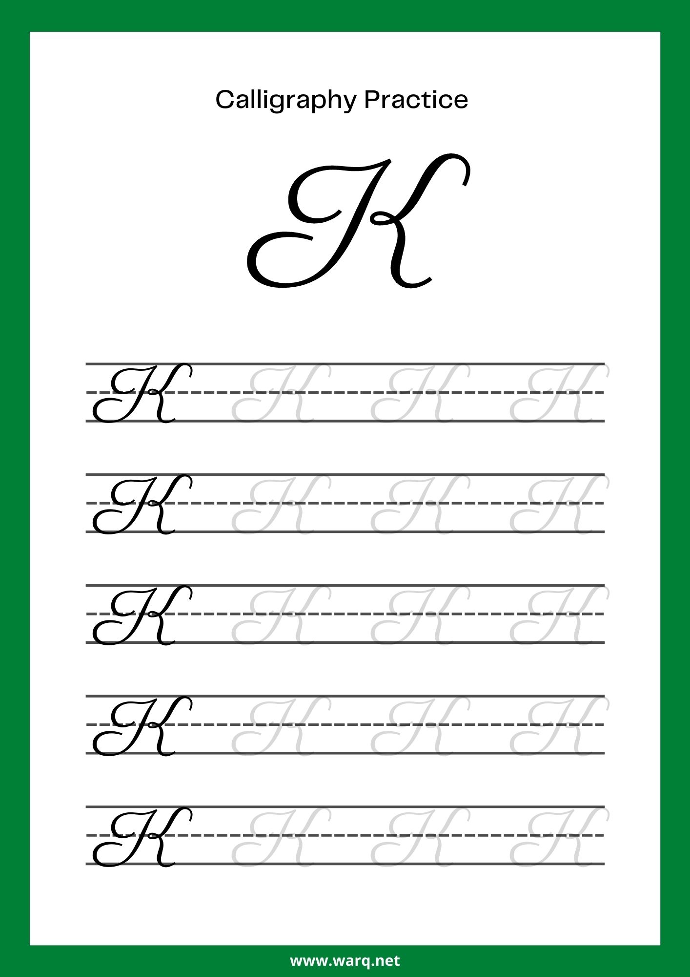 تعدد تمارين كتابة letter K بأكثر من طريقه وشكل يجعل تمكن طفلك من تعلم الحروف الإنجليزية letter K بشكل أسرع.