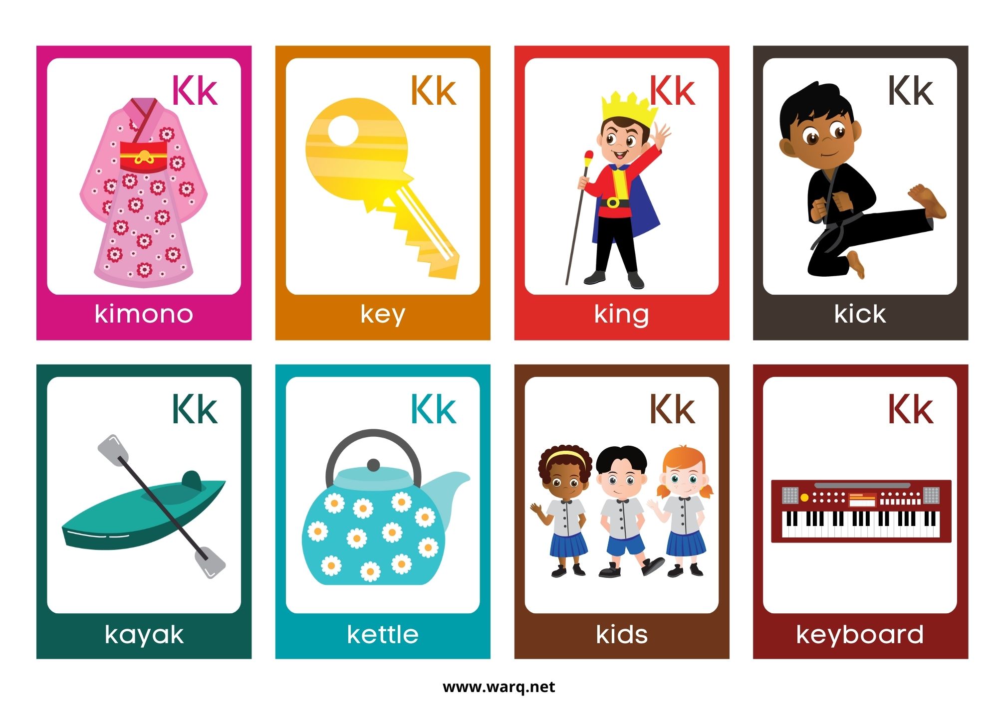 أنشطة تعلم كتابة الحروف الإنجليزية كلمات تبدأ letter K