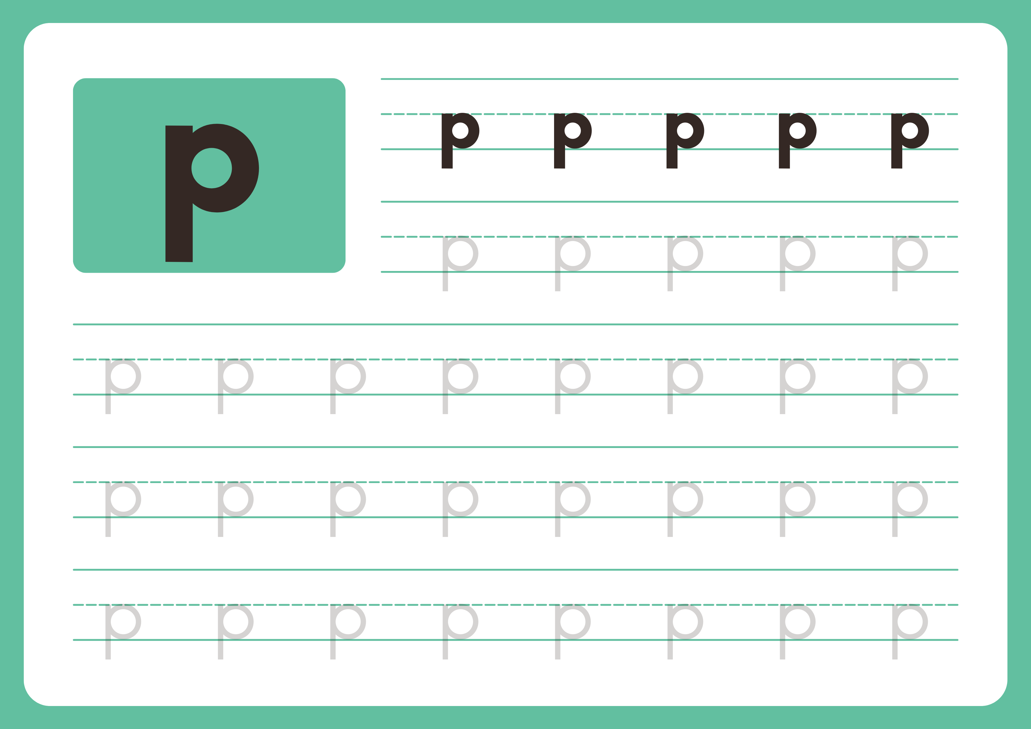 تمارين علي كتابة الحروف الإنجليزية Letter P