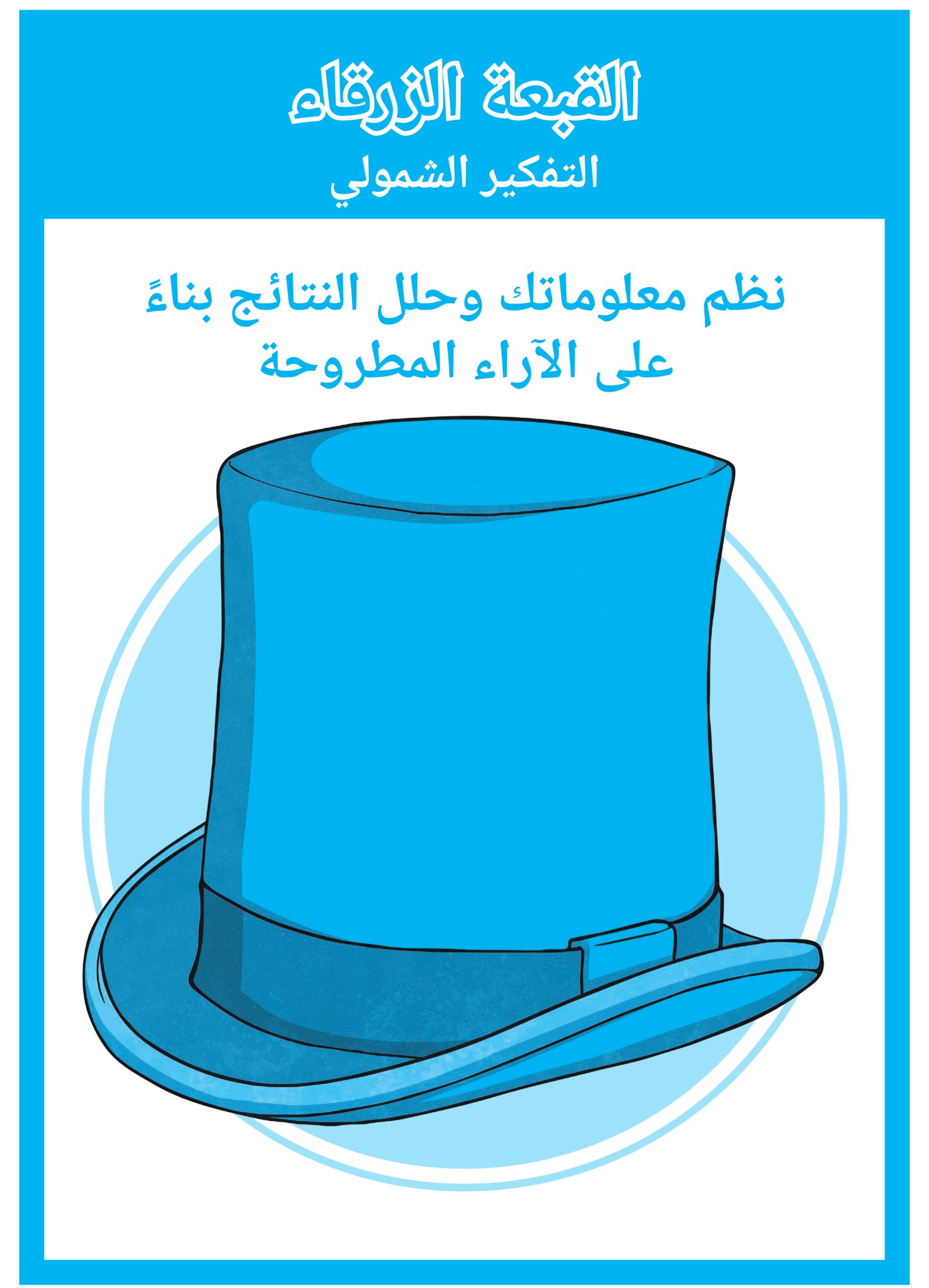- تقييم الأفكار والحلول المقترحة، ثم تنظيمها باستخدام القبعة الزرقاء.